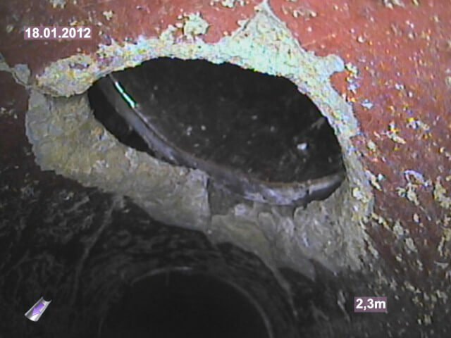 Muffenversätze, Einbrüche, Wurzeleinwachsungen sind oft Vorboten für eine mögliche Verstopfung und die damit verbundenen Folgen wie Rückstau und Überschwemmungen in angeschlossenen Bereichen.